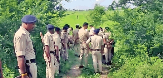 घटनास्थल पर छानबीन करती पुलिस और फॉरेंसिक की टीम।