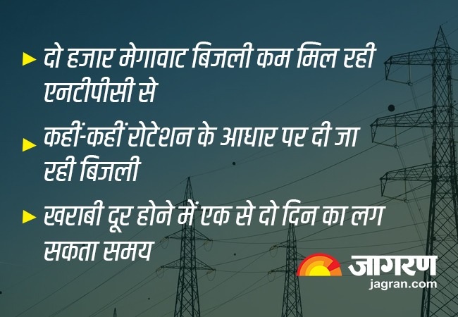 - बिजली कंपनी को एनटीपीसी को 6200 मेगावाट बिजली की आपूर्ति करनी है। परंतु 4200 मेगावाट बिजली की आपूर्ति हो रही है। एनटीपीसी की कई उत्पादन इकाइयों में उत्पादन ठप होने से ऐसी स्थिति बनी है।