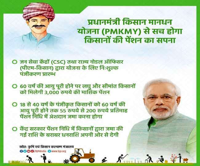 PM Kisan Maandhan Yojana किसानों को सामाजिक सुरक्षा के दायरे में लाने के लिए सरकार हर महीने उन्हें तीन हजार रुपये मासिक पेंशन देगी। अगर आप भी इस योजना के लिए रजिस्टर होना चाहते हैं तो जल्द से जल्द यह काम पूरा कर लें।