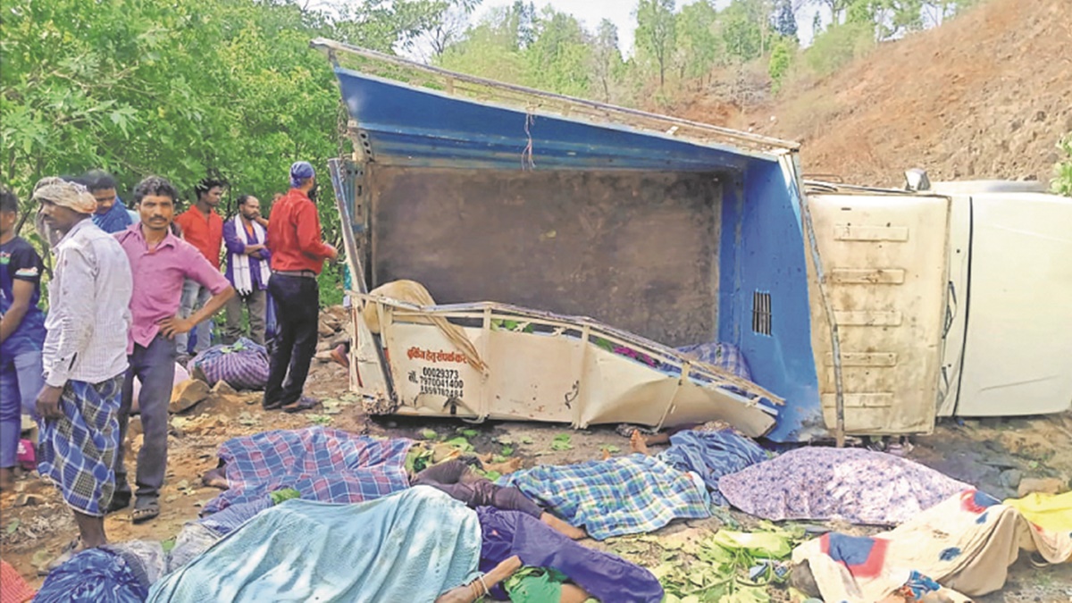 जानकारी के लिए बता दें कि कवर्धा जिले के कुकदुर थाना क्षेत्र में सोमवार को बहपानी गांव के पास एक पिकअप ट्रक के खाई में गिर जाने से कम से कम 19 मजदूरों की मौत हो गई। यह घटना तब हुई जब तेंदू पत्ता इकट्ठा कर लौट रहे 25 मजदूरों का पिकअप ट्रक दुर्घटनाग्रस्त हो गया और वे खाई में गिर गए। बताया जा रहा है कि जब ये हादसा हुआ तब पिकअप वाहन की स्पीड बहुत तेज थी और वाहन अनियंत्रित होने के कारण वाहन सड़क हादसे का शिकार हुआ।