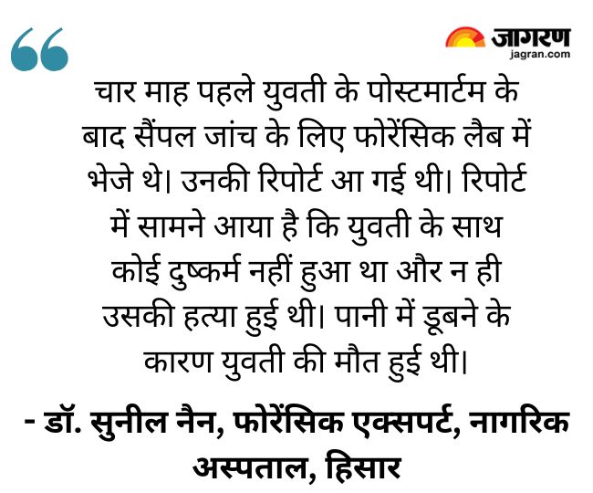 हरियाणा (Haryana Crime) के हिसार (Hisar Canal Death Case) में बालसमंद नहर में मिली युवती की मौत के मामले में चौंकाने वाला खुलासा हुआ है। फॉरेंसिक रिपोर्ट के अनुसार युवती के साथ कोई सामूहिक दुष्कर्म नहीं हुआ था और न ही उसकी हत्या की गई थी। पानी में डूबने से युवती की मौत हुई थी। पुलिस अब रिपोर्ट के आधार पर आगे की कार्रवाई करेगी।