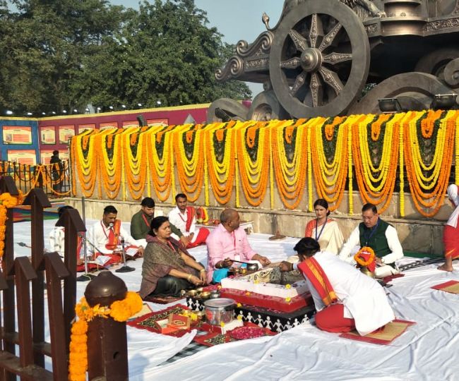 राष्ट्रपति द्रौपदी मुर्मु सुबह करीब 11 बजकर 40 मिनट पर ब्रह्मसरोवर पहुंची। उन्होंने सबसे पहले ब्रह्मसरोवर के पुरुषोत्तम बाग में पूजा की। इसके बाद श्री कृष्ण अर्जुन रथ के पास आहुति दी। फिर राज्यपाल और हरियाणा सरकार के मंत्री के साथ श्री कृष्ण अर्जुन रथ के सामने फोटो खिंचवाई। इसके बाद राष्ट्रपति कुरुक्षेत्र यूनिवर्सिटी के लिए रवाना हुईं। वहीं, ब्रह्मसरोवर में पूजन के दौरान पूर्वजों को याद करते हुए राष्ट्रपति भावुक हो गईं।