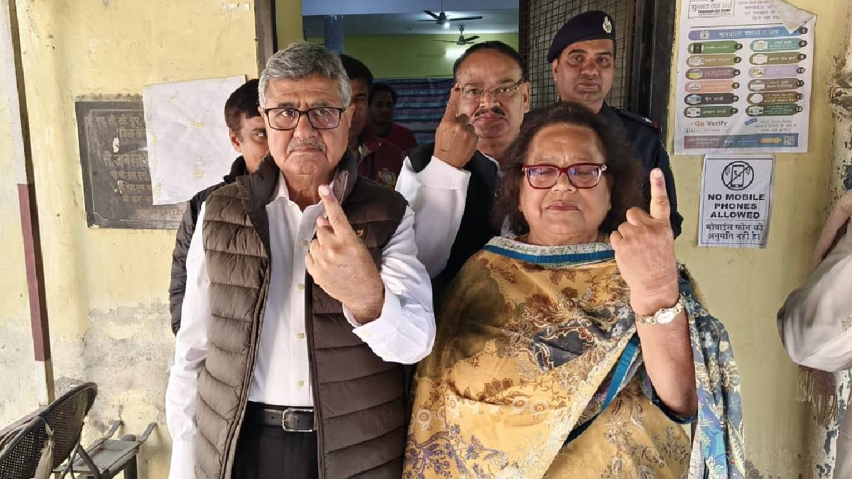 करनाल में बीजेपी मेयर पद की उम्मीदवार रेनू बाला गुप्ता ने परिवार के साथ किया मतदान। हरियाणा स्थानीय निकाय चुनाव के लिए मतदान करने के बाद अपनी स्याही लगी उंगली दिखाते हुए।