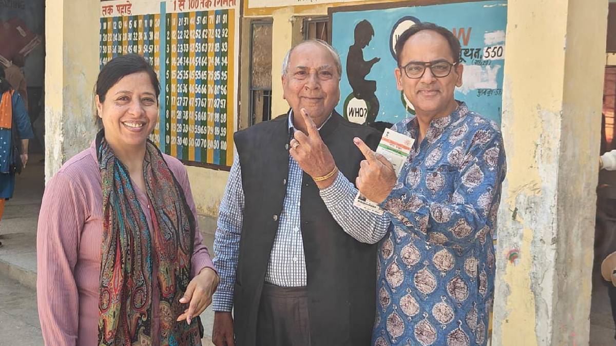 सोनीपत के भाजपा प्रत्याशी राजीव जैन ने परिवार के साथ डीएवी स्कूल में बने मतदान केंद्र पर वोट डाला।