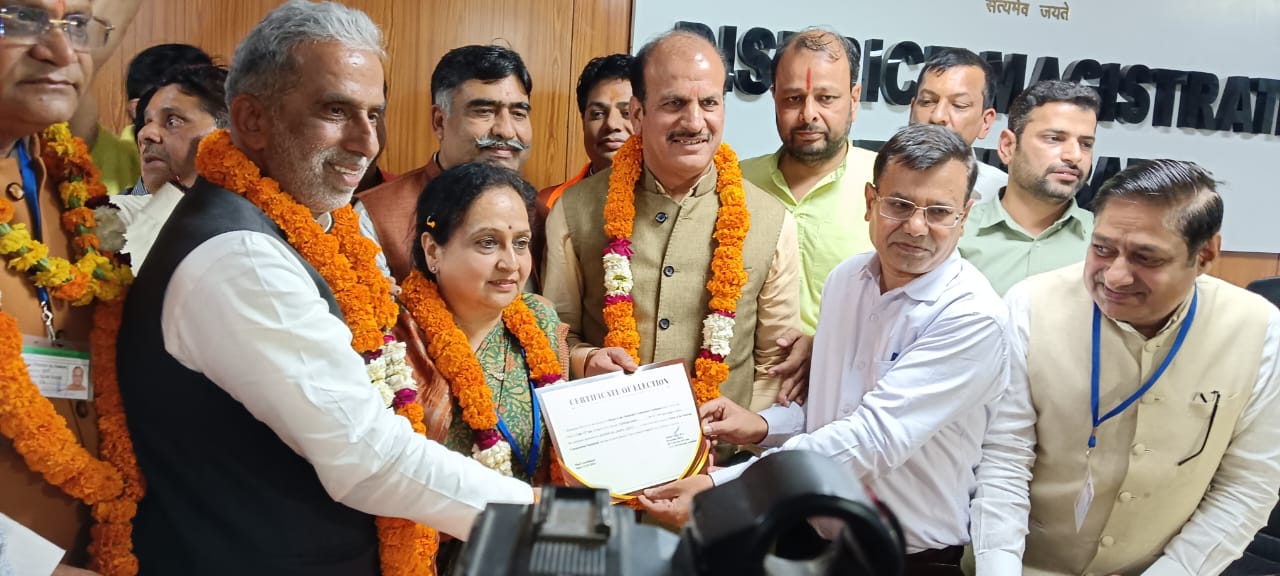 फोटो: औद्योगिक नगरी फरीदाबाद की नवनिर्वाचित मेयर प्रवीण बत्रा जोशी को निर्वाचित होने का प्रमाण पत्र सौंपते हुए