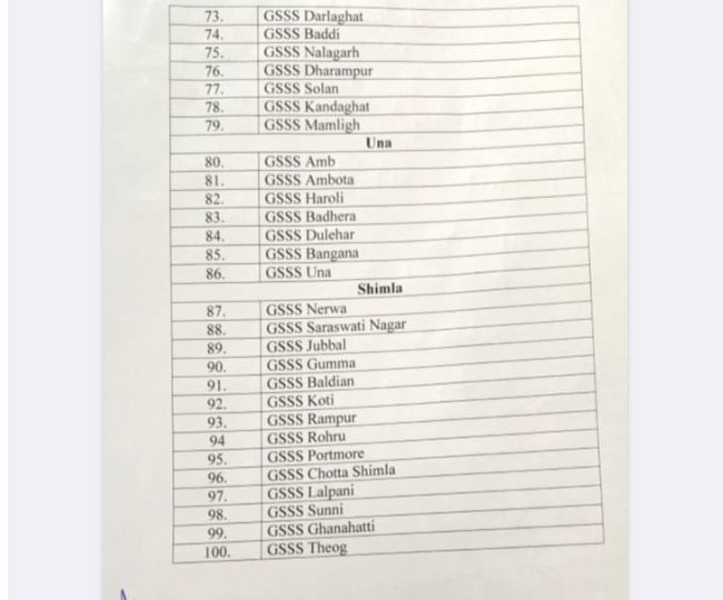 बिलासपुर, चंबा व हमीरपुर के ये स्कूल शामिल