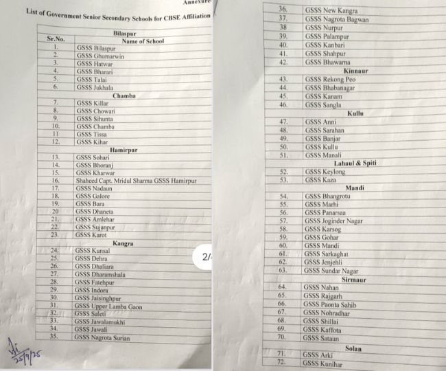 हिमाचल में CBSE से संबद्ध होंगे 100 सरकारी स्कूल, विभाग ने जारी की लिस्ट; मानक पूरे न हुए तो कटेगा सूची से नाम