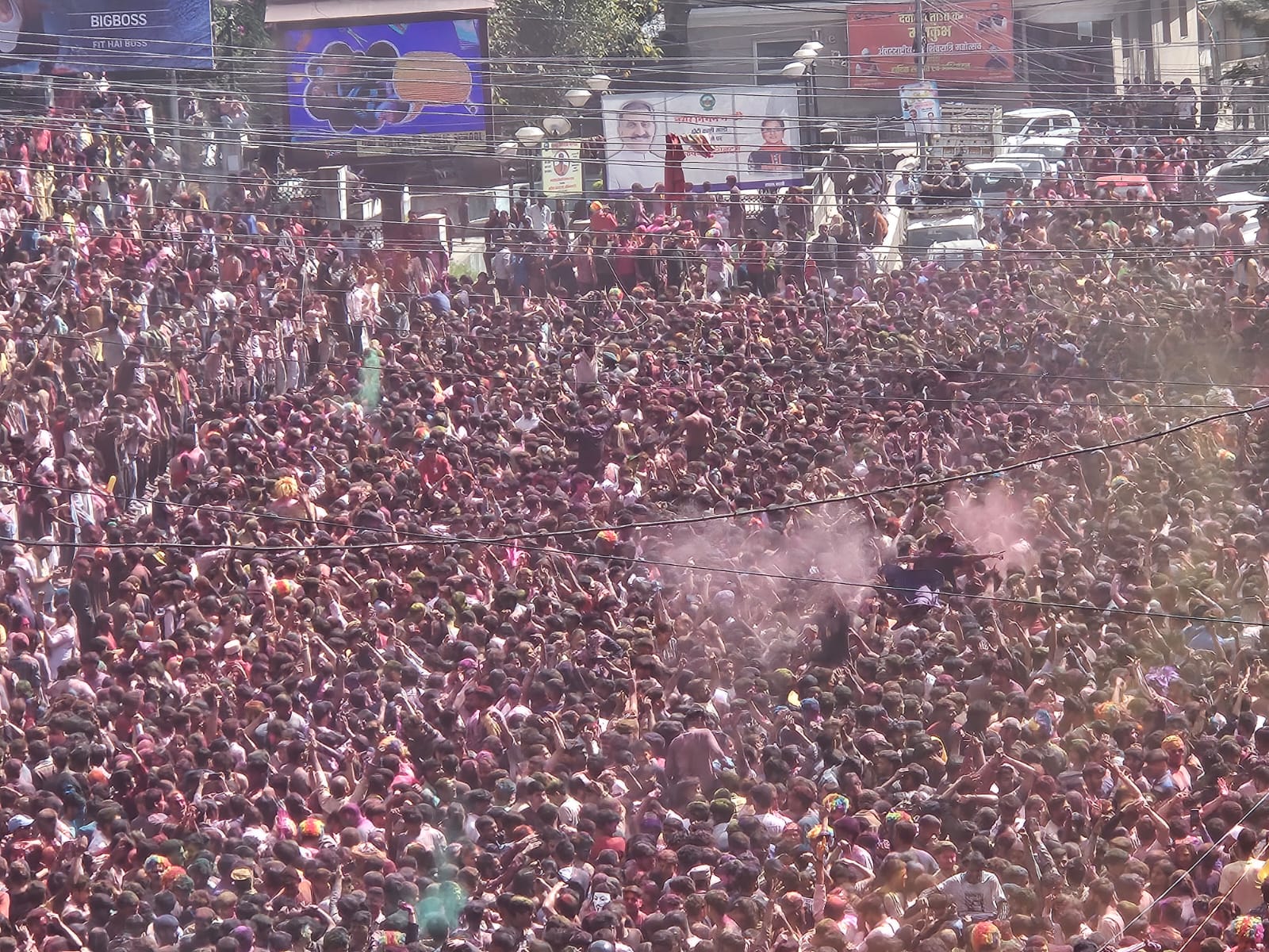फोटो: मंडी में होली का जश्न मनाते लोग