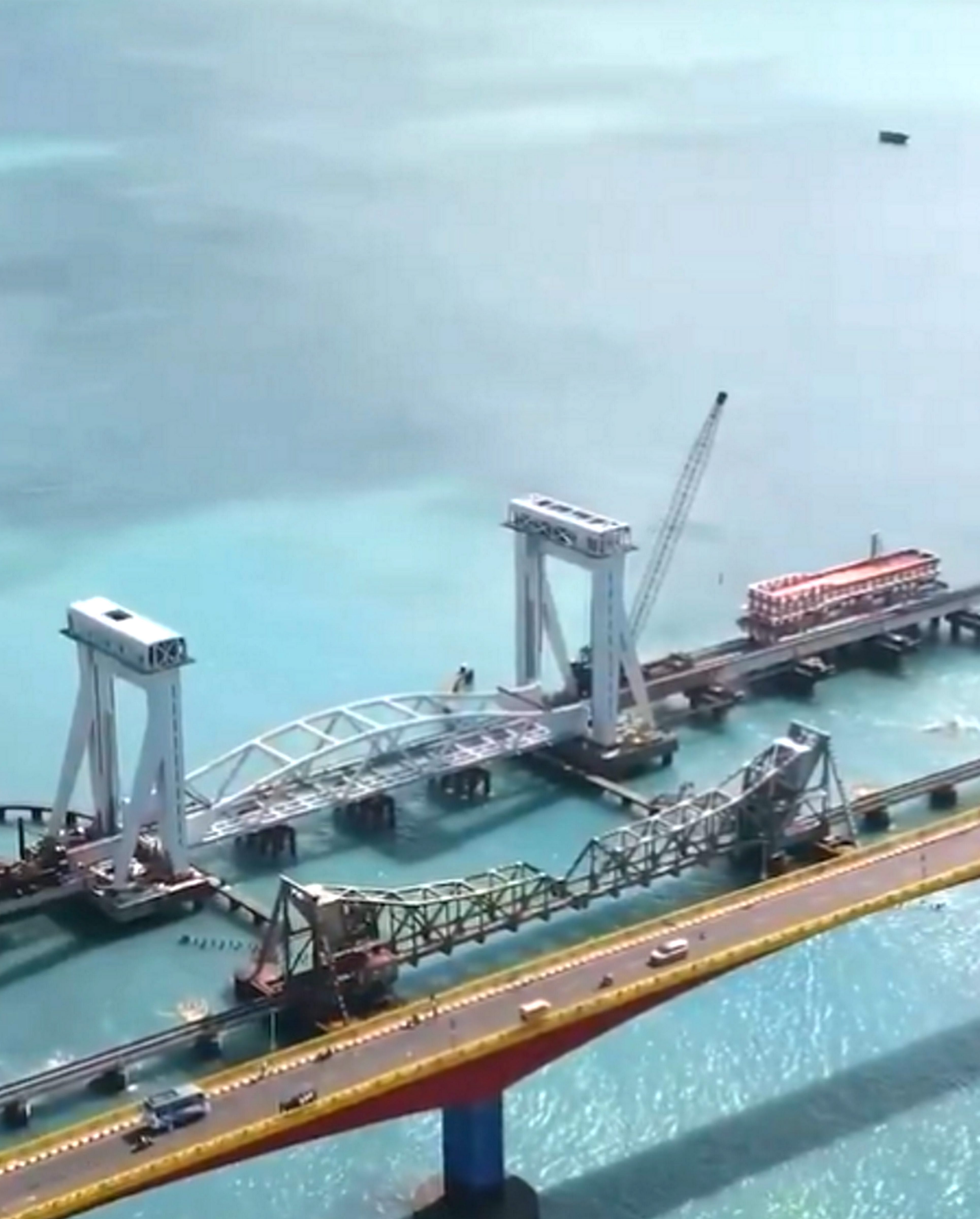 तमिलनाडु में प्रधानमंत्री नरेंद्र मोदी ने पंबन ब्रिज का उद्घाटन किया। इसके साथ ही उन्होंने नई रामेश्वरम-ताम्बरम (चेन्नई) रेल सेवा को हरी झंडी दिखाई। यह रेलगाड़ी पंबन ब्रिज से होकर गुजरी। पीएम मोदी ने रामनवमी के अवसर पर तमिलनाडु के लोगों को ये तोहफा दिया है। इस पुल से रेलगाड़ी गुजरेगी और साथ ही ये पुल उठ भी सकता है जिससे जहाजों को रास्ता दिया जाएगा।