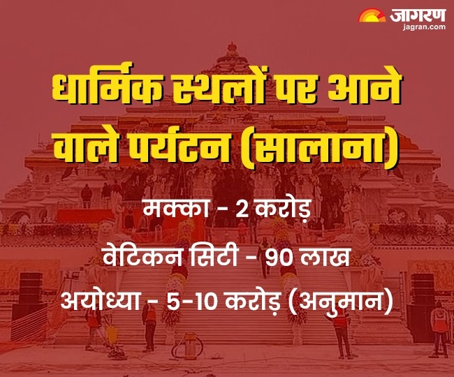 जागरण ब्यूरो, नई दिल्ली। सोमवार को रामलला की प्राण प्रतिष्ठा के साथ ही अयोध्या दुनिया का सबसे बड़ा धार्मिक पर्यटन केंद्र बनने जा रहा है। अमेरिकी कंपनी जेफ्फेरिज इक्विटी रिसर्च ने अपनी ताजा रिपोर्ट में अयोध्या में सालाना 5-10 करोड़ तीर्थयात्री आने का अनुमान लगाया है, जबकि मक्का में सालाना दो करोड़ व वेटिकन सिटी में सालाना 90 लाख तीर्थयात्री आते हैं।