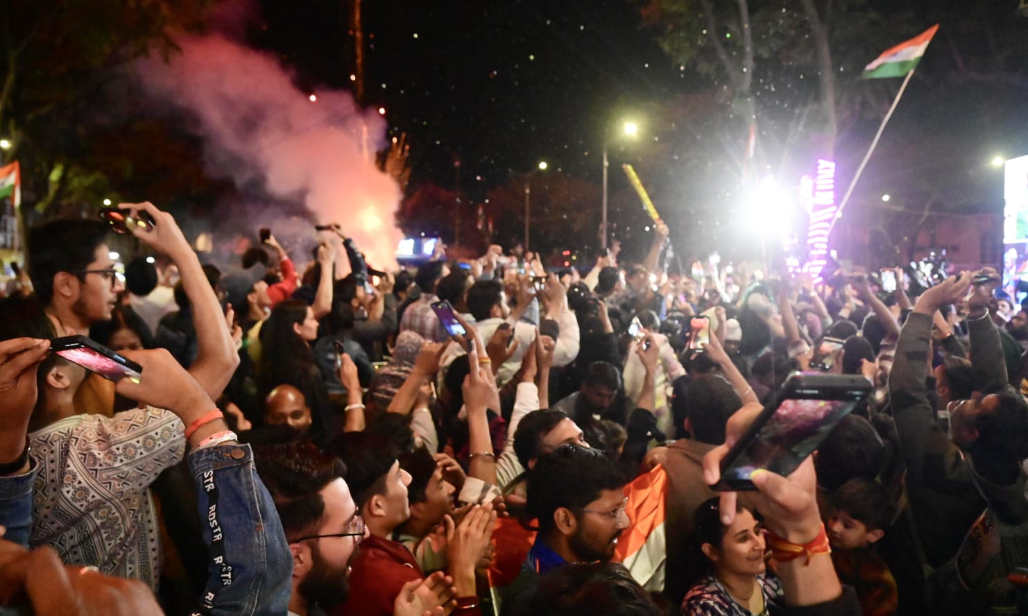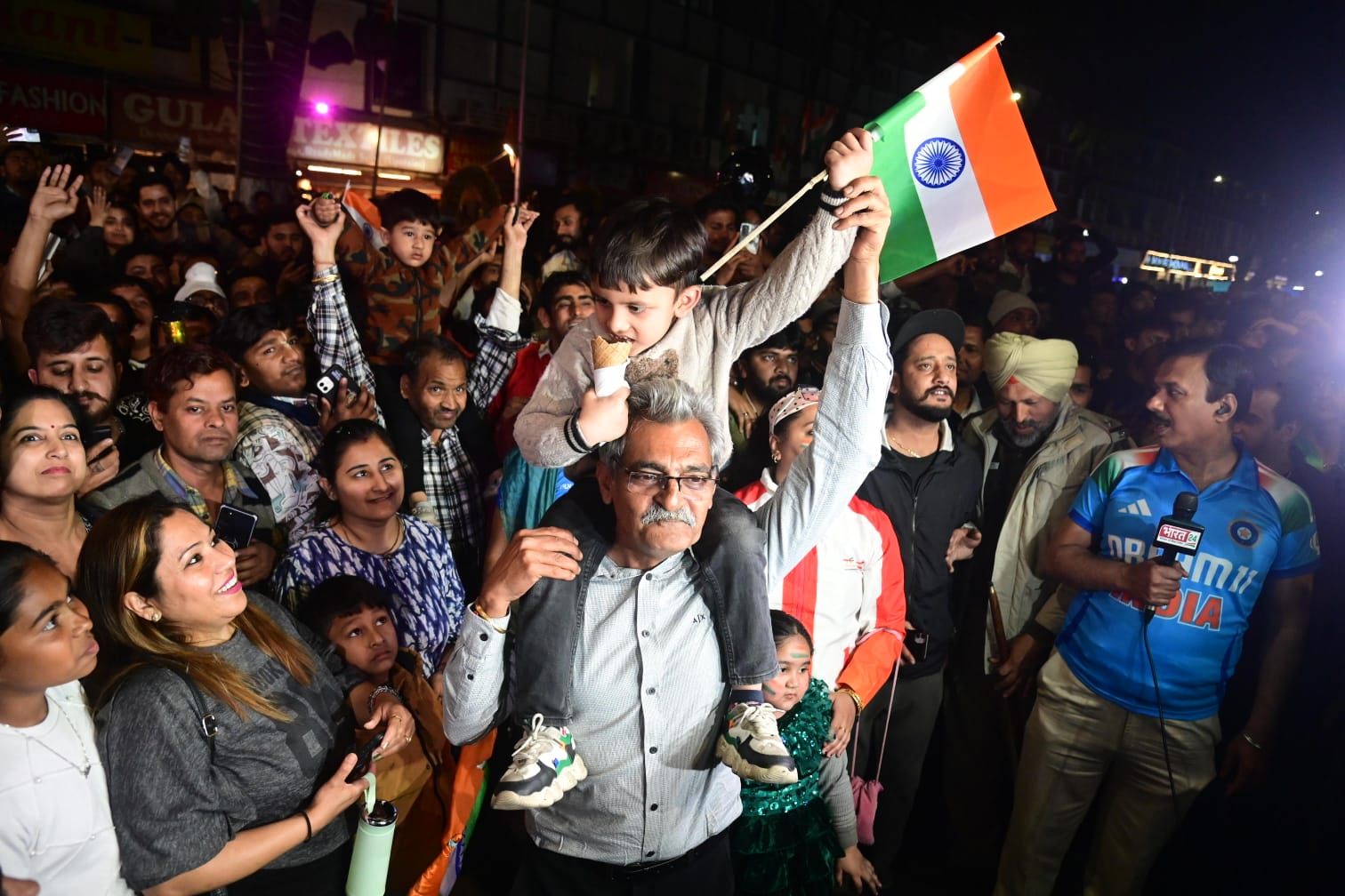हालांकि शुभमन गिल और विराट कोहली के कुछ अंतराल पर विकेट गिरने से लोगों की चिंता बढ़ी, लेकिन फिर जैसे-जैसे रन बनते गए, लोगों का उत्साह बढ़ता गया। भारत के मैच जीतने के बाद क्रिकेट प्रेमियों ने जमकर जश्न मनाया। लोगों ने पटाखे फोड़े और भंगड़ा डाला।