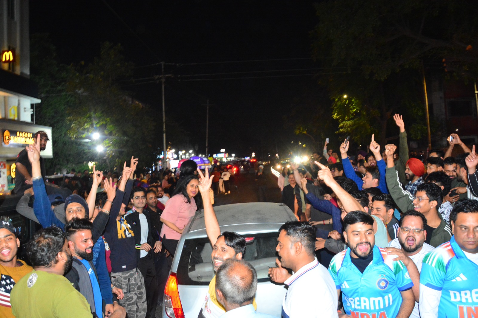 इसके अलावा एलांते मॉल और सेक्टर -22 में बड़ी स्क्रीन लगी थी। छात्रों में भंगड़ा डाल कर इस जीत की खुशी को मनाया। जब रोहित बल्लेबाजी कर रहे थे तो भारत माता की जय और वंदे मातरम भी गूंजे, लेकिन शुभमन के आउट के बाद जब कोहली एक रन बनाकर आउट हो गए तो सभी गंभीर हो गए।