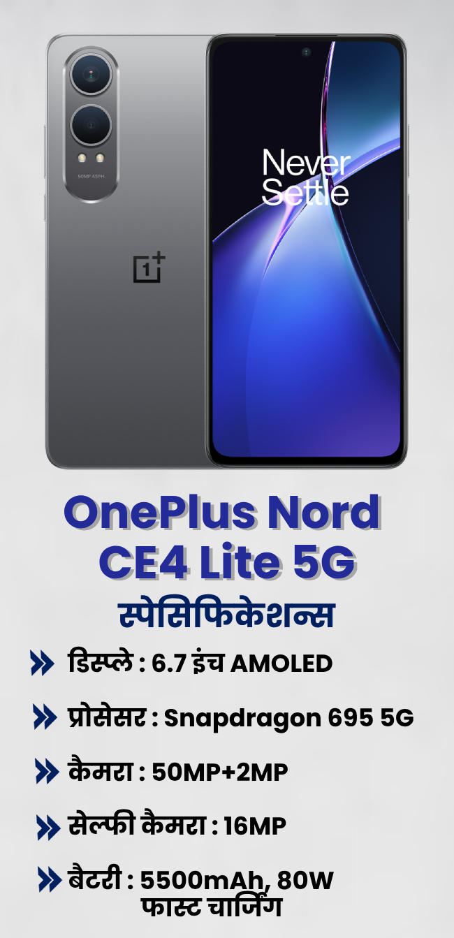टेक्नोलॉजी डेस्क, नई दिल्ली। OnePlus ने भारत में कुछ महीने पहले अफोर्डेबल फोन Nord CE 4 Lite को लॉन्च किया था। कंपनी ने इस फोन को 19,999 रुपये की कीमत में पेश किया था। इस फोन को क्वालकॉम के Snapdragon 695 प्रोसेसर के साथ मार्केट में उतारा गया है। वनप्लस का यह फोन 20 हजार रुपये की कीमत काफी पॉपुल फोन है, जो 5,500 mAh की बैटरी और 80W फास्ट चार्जिंग के साथ आता है। अमेजन की अपकमिंग Great Indian Fesitval सेल के दौरान Nord CE 4 Lite पर 3,000 रुपये के डिस्काउंट में खरीदा जा सकता है।