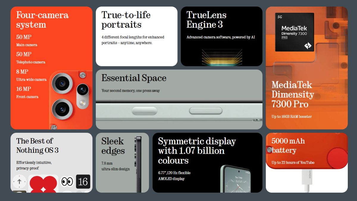 Nothing लिमिटेड टाइम के लिए फोन पर 1,000 रुपये की छूट भी दे रहा है, जिससे 128GB वर्जन का प्राइस 17,999 रुपये और 256GB वैरिएंट का प्राइस 19,999 रुपये हो जाता है। यह डिस्काउंट ऑफर Flipkart, Flipkart Minutes, Croma और Vijay Sales सहित रिटेल प्लेटफॉर्म पर मिलेगा।