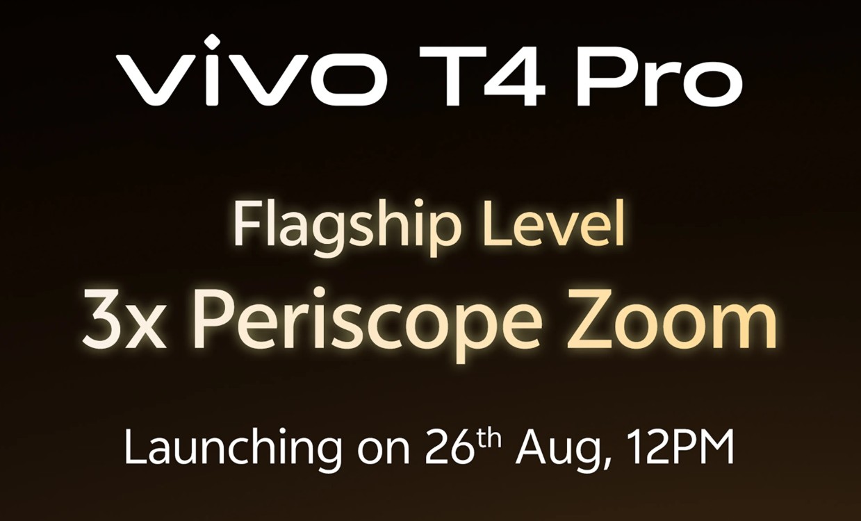 कंपनी ने प्रेस रिलीज भेजकर कन्फर्म किया कि Vivo T4 Pro 5G भारत में 26 अगस्त को दोपहर 12 बजे लॉन्च होगा। भारत में इसकी कीमत 25,000 रुपये से 30,000 रुपये के बीच होगी। फ्लिपकार्ट माइक्रोसाइट भी लाइव है, जो ई-कॉमर्स प्लेटफॉर्म पर इसकी उपलब्धता कन्फर्म करता है। प्रमोशनल पोस्टर में फोन ब्लू और गोल्डन कलर ऑप्शन में दिखाया गया है।