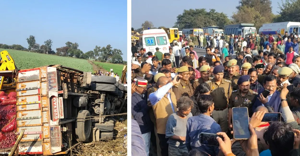 UP के जालौन में ट्रक पलटने से 5 लोग दबे, ननद-भाभी सहित 3 की मौत