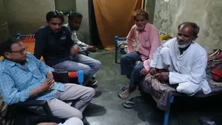 मवाना के अगवानपुर में गिरफ्तार आतंकी अरबाब का पिता रहीसुद्दीन चारपाई पर बैठा हुआ व मौजूद अन्य लोग। जागरण