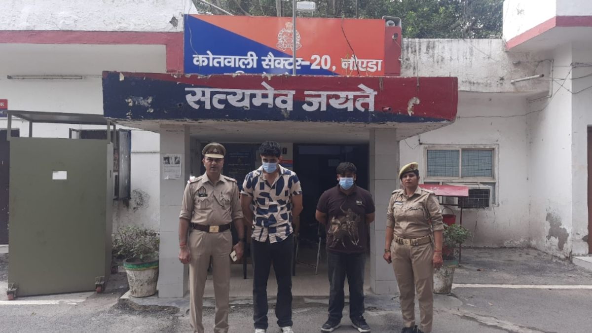 नोएडा सेक्टर 20 थाना पुलिस की गिरफ्त में कार चालक और उसका दोस्त। सौ. पुलिस