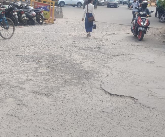 नोएडा सेक्टर-16 में WTT टावर की सर्विस रोड पर गड्ढों का राज, लोग रोज हो रहे हादसों का शिकार