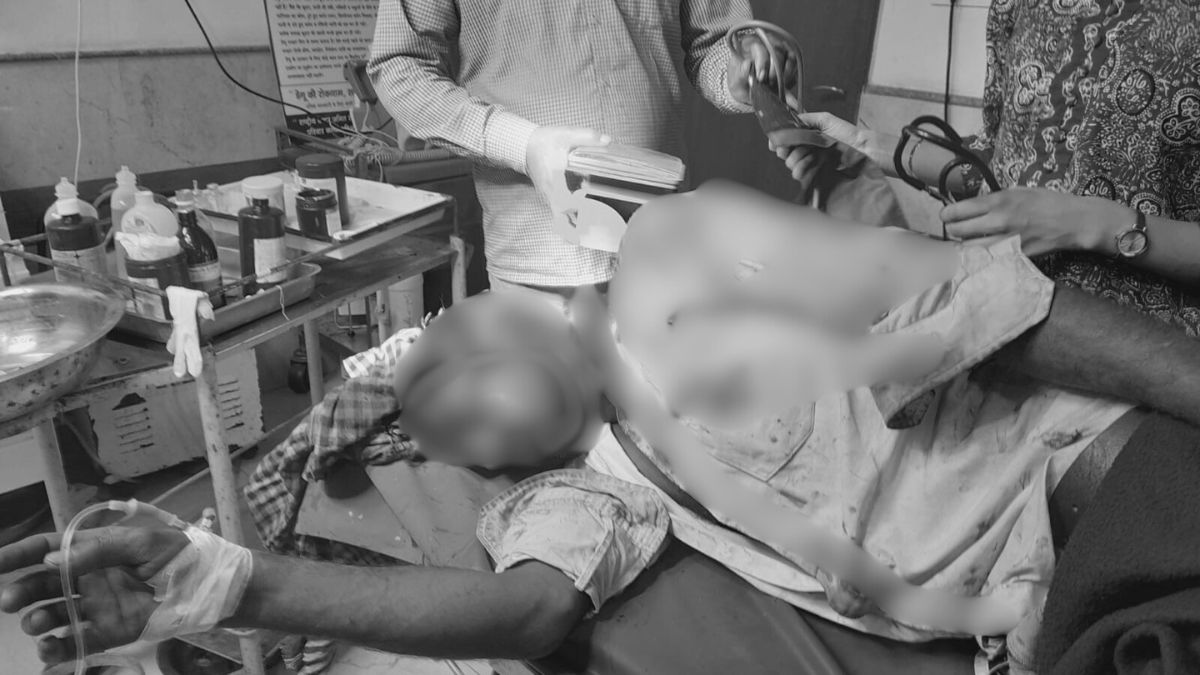 फोटो- गुलदार के हमले में घायल व्यक्ति का उपचार करते चिकित्सक।