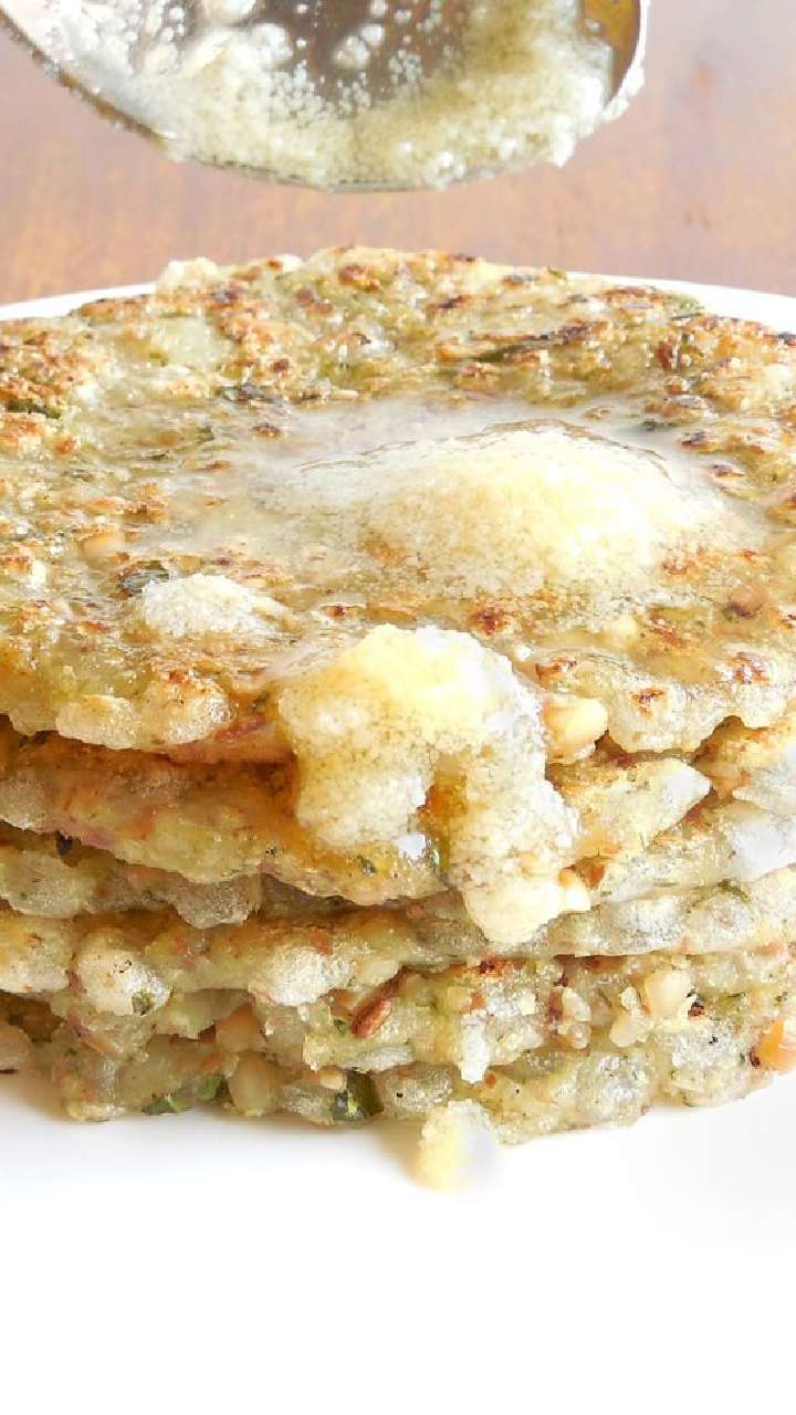 आप साबुदाने का घोल बनाकर उसमें टमाटर, धनिया मिर्च और नमक के साथ थोड़ा सा सिंघाड़े का आटा मिलाकर तवे पर साबूदाना थालीपीठ बना सकती हैं।