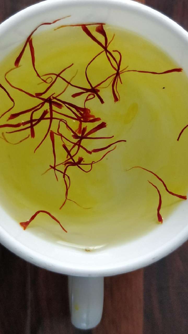केसर चाय बनाने के लिए आप सबसे पहले केसर के धागों को गर्म पानी या दूध में 15 मिनट के लिए भिगो दें।