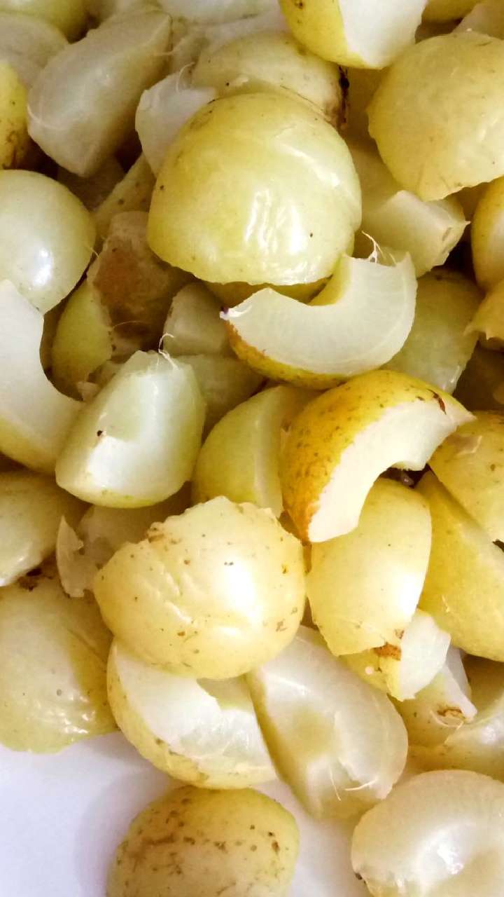 आंवलों को धोकर पानी में हल्का उबालें। जब यह नरम हो जाएं, तो आंवलों को हल्के से प्रेस कर खंडों में अलग कर लें।