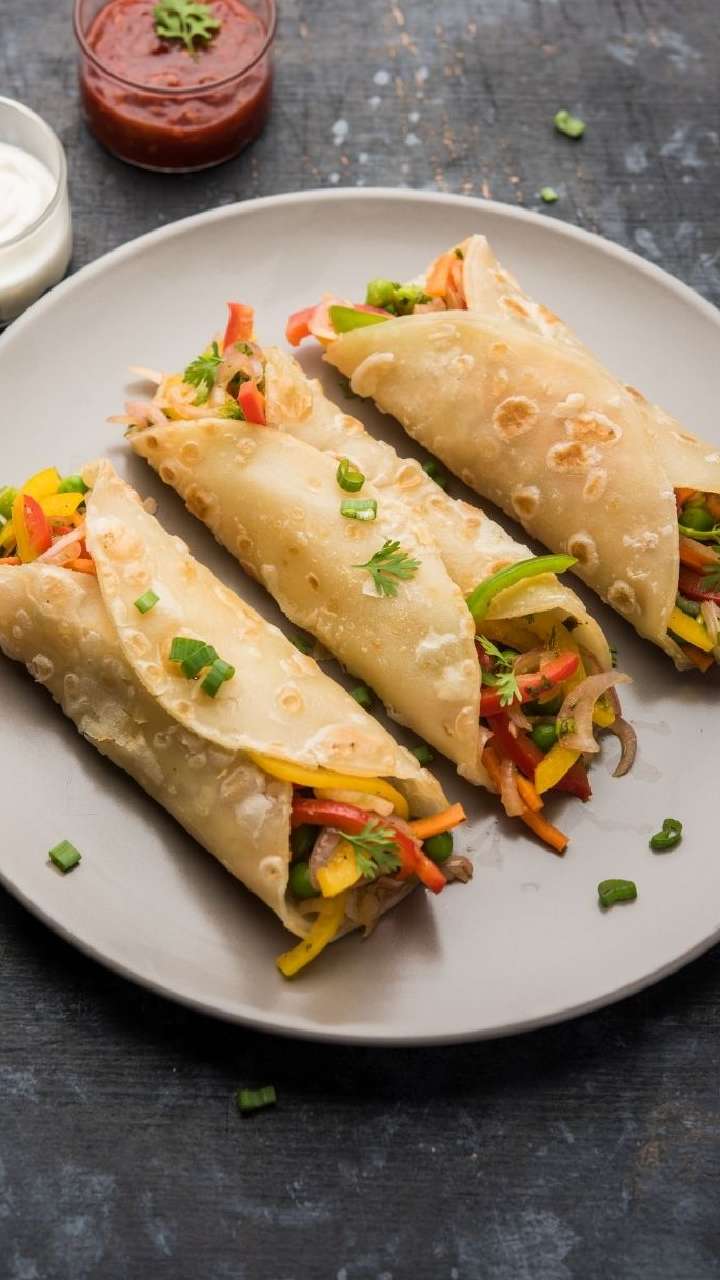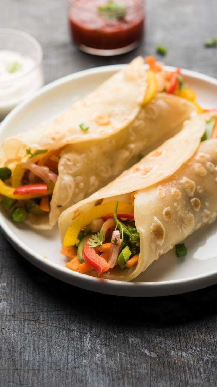 रोटी को मोड़कर उसमें मेयो, वेजेज या पनीर भरकर तवे पर टोस्ट करें। इसे काटकर सर्व करें—क्रिस्पी और बहुत टेस्टी।